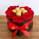 Caja con rosas y Ferrero Rocher