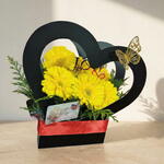 Este encantador centro de flores es la combinación perfecta de belleza y delicadeza. Compuesto por dos ornamentales, un corazón de base en una caja y un racimo de gerveras este arreglo floral aporta un toque de naturaleza y frescura a cualquier espacio. Perfecto para decorar tu hogar o como regalo para esa persona especial. Con su diseño elegante y detalles sofisticados, este centro de flores se convertirá en el punto focal de cualquier ambiente. Puedes solicitar tu color favorito al realizar tu compra