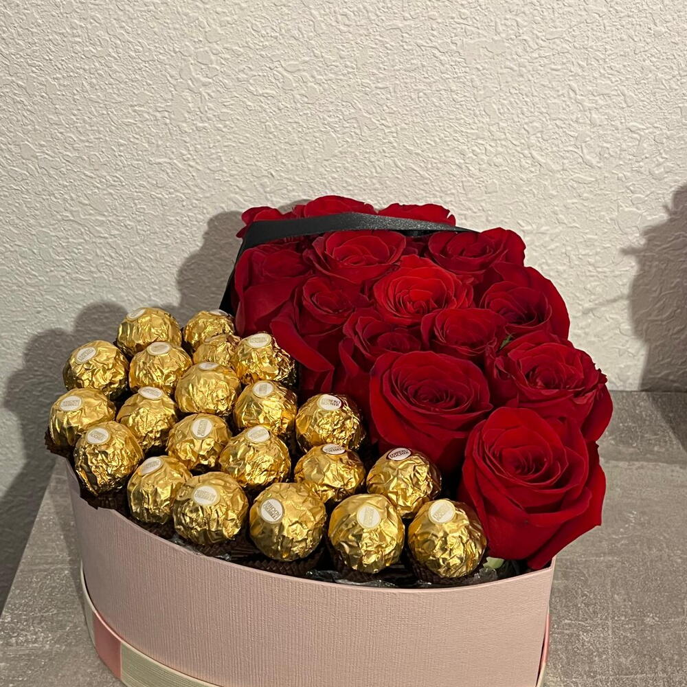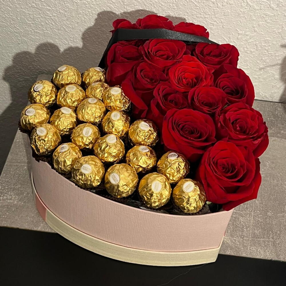 Ferrero rocher - 21 ud. rosas rojas - 15 ud. caja de corazón - 1 ud.