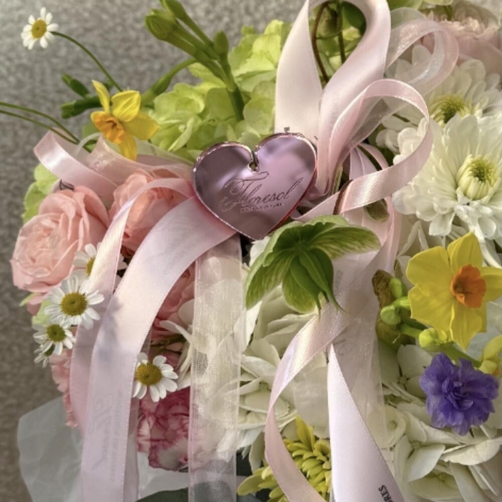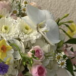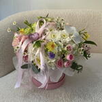 hortensia - 4 ud. delphinium - 3 ud. rosas - 3 ud. Wanda - 1 ud. crisantemos - 3 ud. manzanilla - 3 ud. narciso - 7 ud. gileborus - 3 ud.