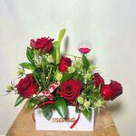 Un regalo lleno de amor y elegancia para mamá. Este arreglo en caja blanca con la palabra mama combina rosas rojas aterciopeladas con un delicado follaje verde y toques de flores de relleno en tonos crema, además de un globo transparente con pétalos en su interior que le aporta un detalle moderno y tierno. Es perfecto para el Día de la Madre, cumpleaños u ocasiones especiales en las que se quiera expresar cariño profundo. Para conservar las flores frescas, colócalas en un lugar fresco, lejos de la luz solar directa, y revisa la humedad del oasis floral para mantenerlo ligeramente húmedo.