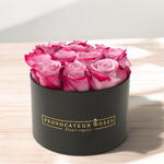 La Caja de Rosas Encanto Púrpura es un arreglo lleno de romanticismo y sofisticación. Sus hermosas rosas bicolor, en tonos lila suave con bordes púrpura intenso, crean un diseño armonioso y elegante que cautiva desde el primer vistazo. Presentado en una caja negra de lujo, este bouquet es ideal para regalar en ocasiones especiales como aniversarios, cumpleaños o simplemente para expresar tus sentimientos más profundos. Su forma compacta lo hace perfecto para decorar espacios íntimos con un toque de glamour y delicadeza. Este arreglo simboliza belleza y emociones sinceras.
