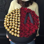 Caja grande de rosas y Ferrero