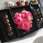 Macarons - 5 ud. rosas rosadas - 6 ud. fresas con chocolate - 5 ud. bombones artesanales - 5 ud. caja i love u de alta calidad - 1 ud. varas de mini rosas - 5 ud.