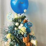 Dale la bienvenida al nuevo integrante de la familia con este adorable arreglo en tonos azul y blanco, perfecto para celebrar la llegada de un bebé. El globo azul con mensaje personalizado, las flores frescas y el simpático peluche de ganso transmiten ternura y alegría. Su estilo elegante y divertido lo hace ideal para regalar en baby showers o en las primeras visitas al recién nacido. Mantener en un lugar fresco, lejos de la luz solar directa. Añadir agua limpia al recipiente cada 2 días y recortar los tallos en diagonal para prolongar la vida de las flores.