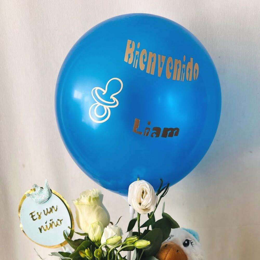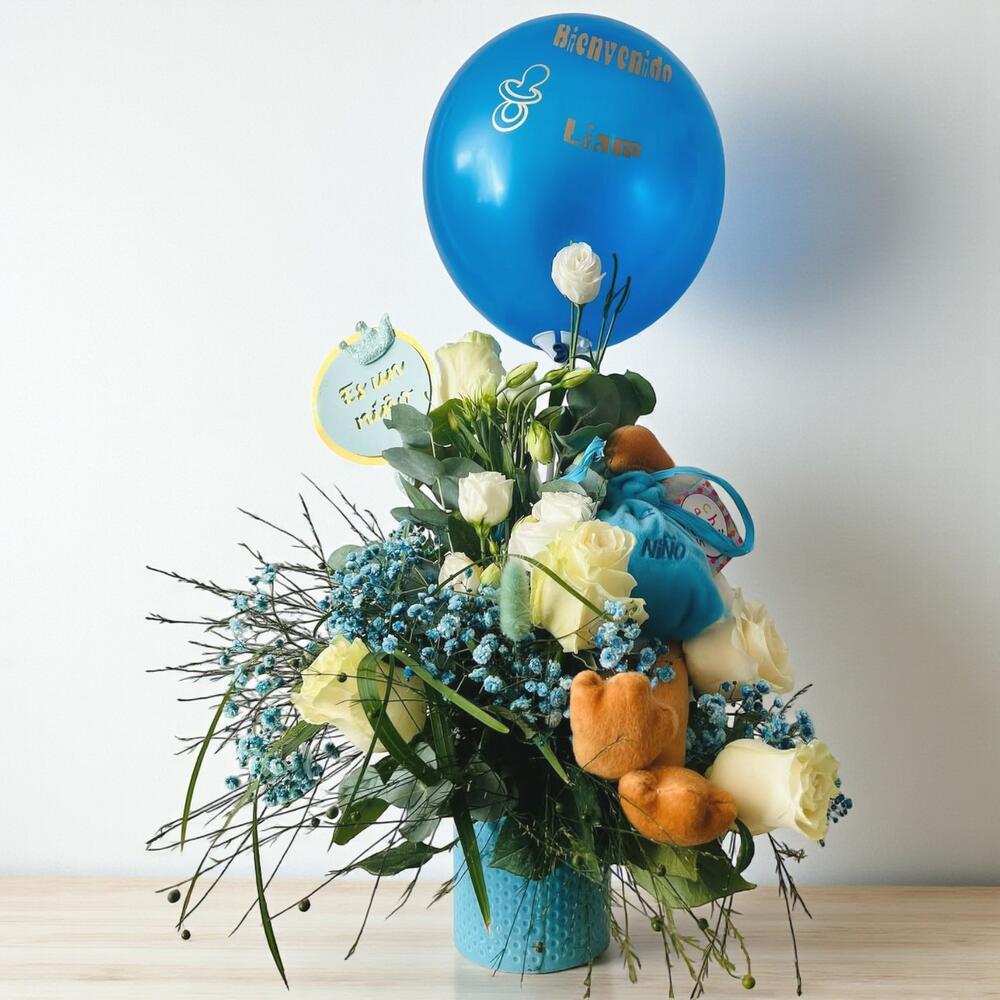 Dale la bienvenida al nuevo integrante de la familia con este adorable arreglo en tonos azul y blanco, perfecto para celebrar la llegada de un bebé. El globo azul con mensaje personalizado, las flores frescas y el simpático peluche de ganso transmiten ternura y alegría. Su estilo elegante y divertido lo hace ideal para regalar en baby showers o en las primeras visitas al recién nacido. Mantener en un lugar fresco, lejos de la luz solar directa. Añadir agua limpia al recipiente cada 2 días y recortar los tallos en diagonal para prolongar la vida de las flores.