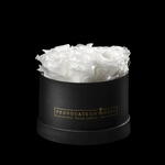 Caja redonda 16cm de rosas preservas blanca