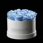 Caja redonda 20cm de rosas preservas baby blue