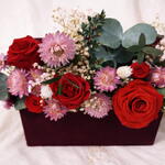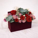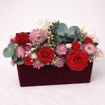 Caja regalo floral con rosas preservadas, realizada de forma artesanal