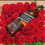 rosas rojas - 24 ud. cajita - 1 ud. botella de black label - 1 ud.