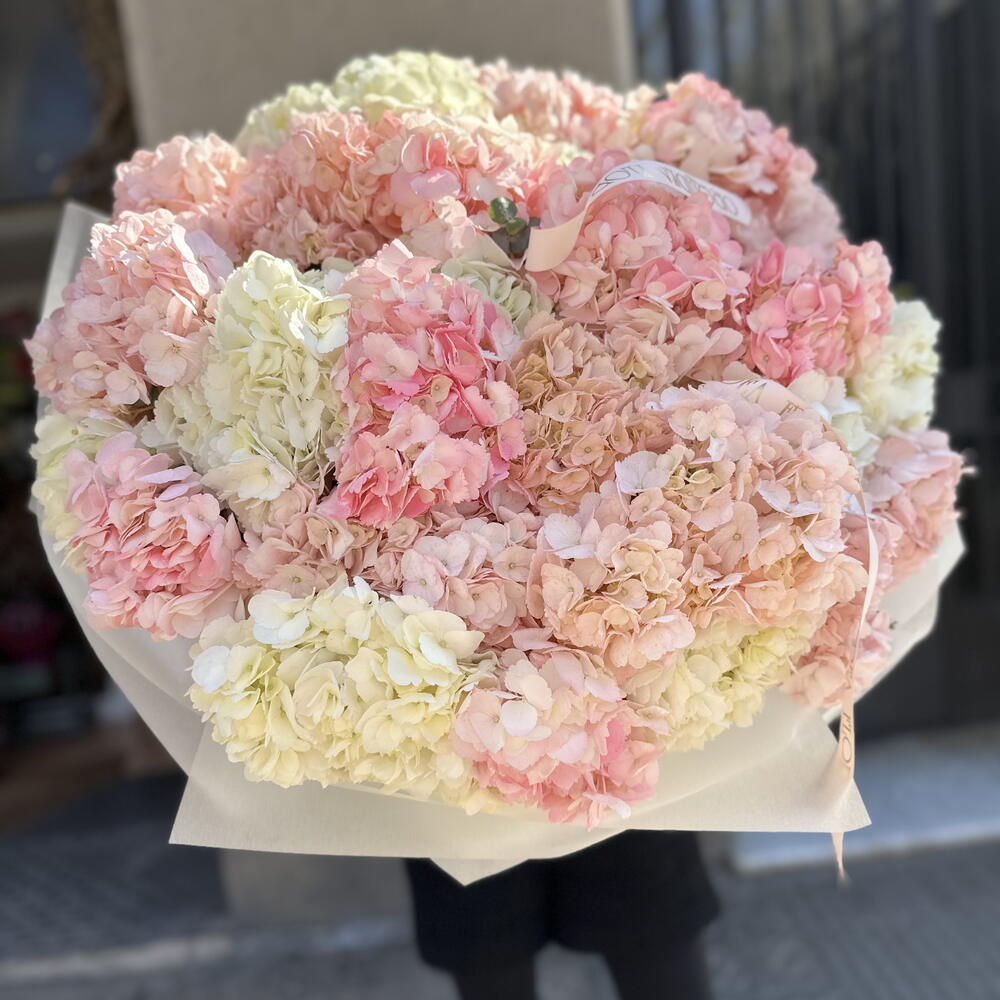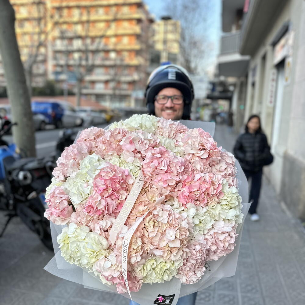 paper - 1 ud. hydrangea white - 15 ud. hortensias rosas - 15 ud.