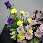 Disfruta de la mezcla de texturas y colores cautivadores con nuestra colección de cajas de flores. Esta caja especialmente seleccionada presenta una variedad de tesoros florales que incluye un limonium, un impresionante crisantemo, tres deslumbrantes claveles y dos encantadoras campánulas. Realza el aroma de tu entorno con una rama de frondoso Eucalyptus cinerea y lisianthus rosa. El arreglo también incluye un bloque Classic Oasis para mantener la frescura y dos ramitas de cerezo para añadir un toque caprichoso. Todo viene bellamente arreglado en una caja de cartón, para una presentación atractiva que seguro llamará la atención! Haz que tu día a día sea especial con nuestra flor en caja, perfecta para regalar o simplemente para darte un pequeño capricho de la maravilla de la naturaleza.