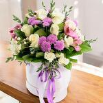 Un encantador arreglo floral que combina la suavidad de las rosas blancas con la vitalidad de crisantemos morados y alstroemerias rosadas. Este diseño está realzado por follaje verde fresco y delicadas bayas blancas, creando un equilibrio perfecto entre elegancia y frescura. Presentado en una elegante caja blanca adornada con un lazo lila, es el regalo perfecto para expresar ternura y aprecio en ocasiones especiales como aniversarios, cumpleaños o simplemente para alegrar el día de alguien especial. Coloca la caja en un lugar fresco y alejado de la luz solar directa o corrientes de aire. Humedece ligeramente la esponja floral cada 1-2 días para mantener las flores frescas. Retira las flores marchitas para prolongar la belleza del arreglo. Rocía las hojas con agua para mantenerlas hidratadas y brillantes.