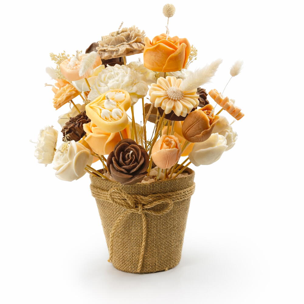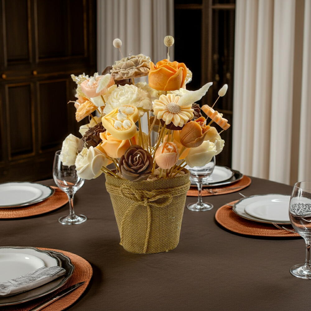 Sumérgete en la belleza serena y el lujo natural del Centro Venecia. Este exquisito arreglo de velas artesanales es una oda a la sofisticación sin artificios, fusionando el encanto de lo rústico con la elegancia más depurada. Inspirado en los tonos cálidos de la tierra, es una experiencia que enriquece cualquier ambiente. Si deseas personalizar colores y aroma indícanoslo en las observaciones del pedido.