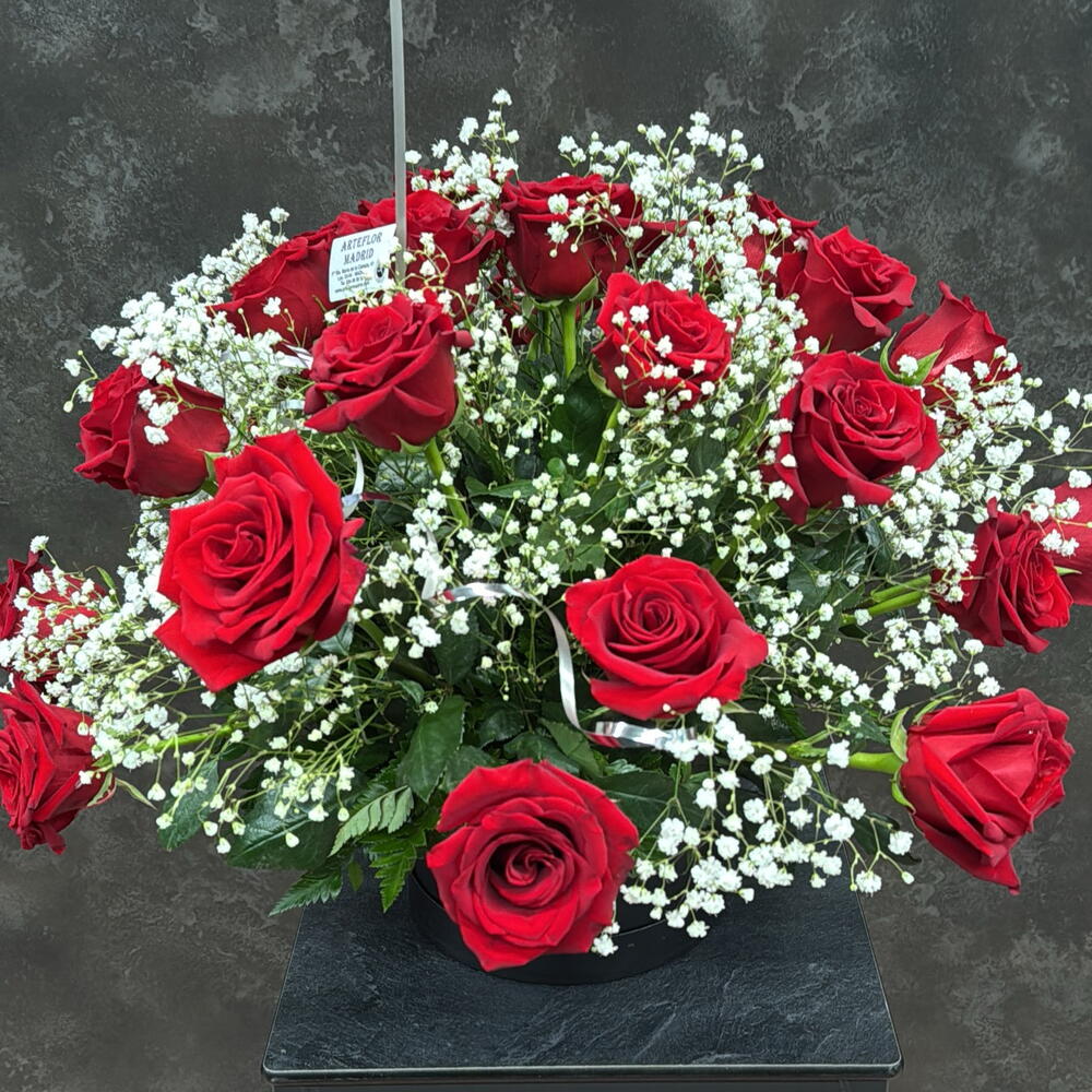 paniculata blanca - 4 ud. esponja floral - 1 ud. base de cerámica - 1 ud. centro rosas rojas - 18 ud.