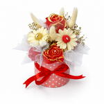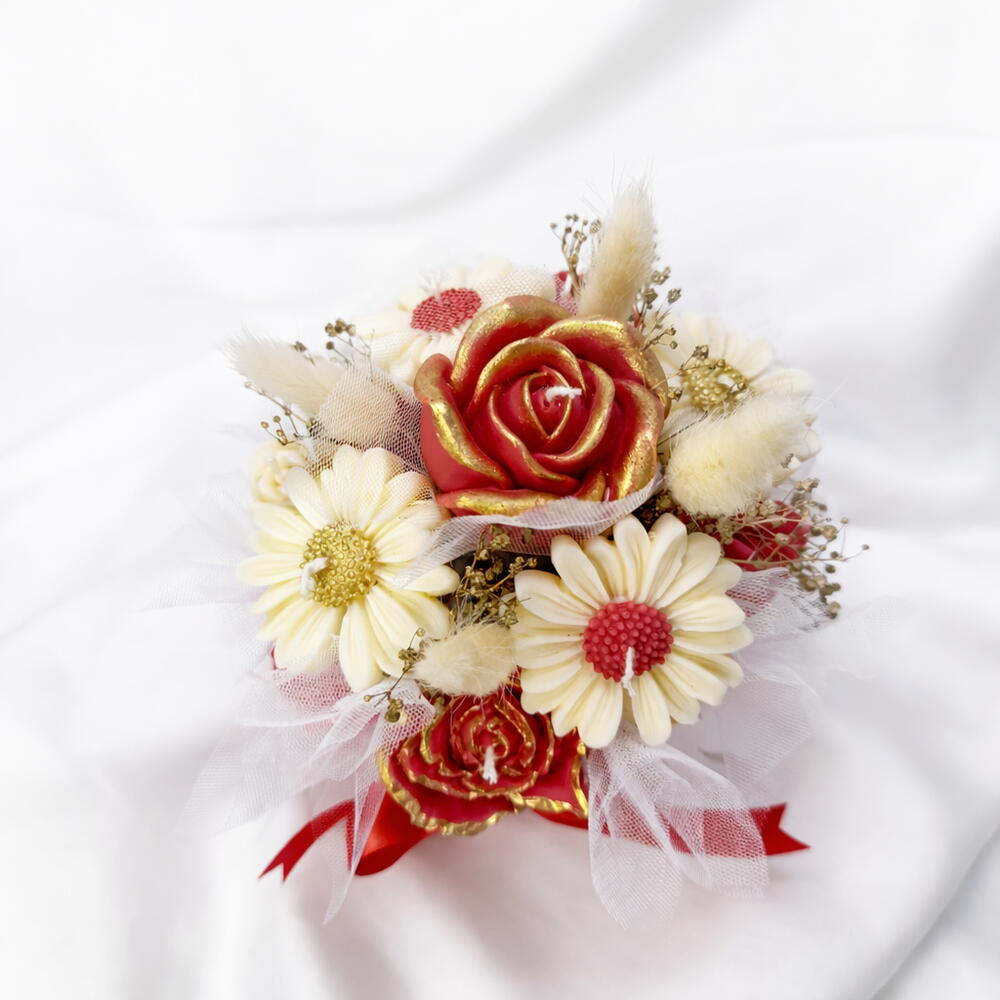 Centro floral de cera artesanal con 13 flores. Un regalo romántico y elegante para sorprender a tu pareja con un detalle lleno de emoción y significado.