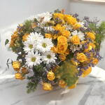 Limonium - 3 ud. margaritas - 3 ud. minirosas - 24 ud. miroclaudio - 1 ud.