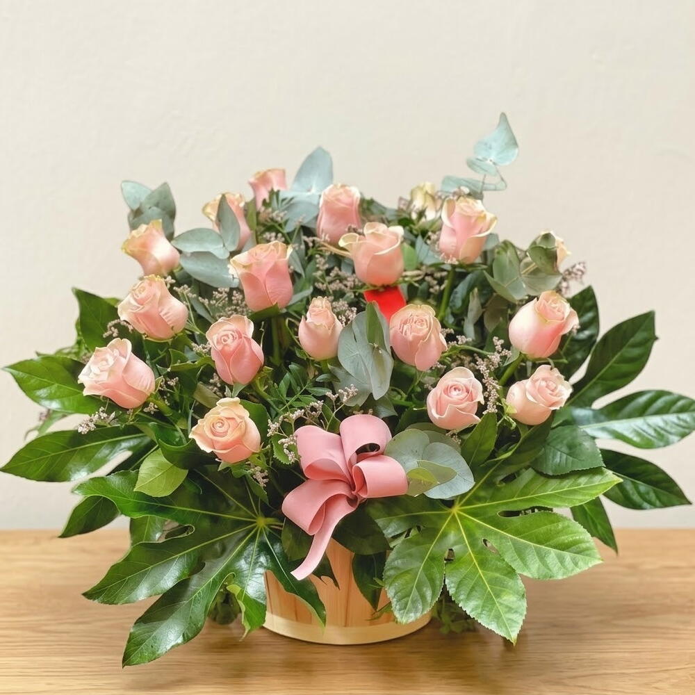 La Cesta Rosa Elegancia es un arreglo floral encantador y delicado, compuesto por 18 rosas rosadas premium que transmiten dulzura y elegancia. Este diseño se complementa con verdes variados y está dispuesto en una elegante cesta, ideal para regalar en cumpleaños, aniversarios, Día de la Madre o cualquier ocasión especial que merezca un detalle inolvidable. Recomendaciones de cuidado: Para mantener las rosas frescas por más tiempo, asegúrate de agregar agua limpia diariamente en la base de la cesta. Mantén el arreglo en un lugar fresco, lejos de la luz solar directa y corrientes de aire. Retira las flores o verdes que puedan comenzar a marchitarse para prolongar la vida del arreglo. Este diseño floral es perfecto para quienes buscan un regalo sofisticado, romántico y lleno de buen gusto. ¡Haz tu pedido y sorprende a esa persona especial con esta obra de arte floral!