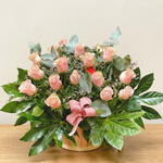 cesta - 1 ud. verdes variados - 15 ud. rosas rosas - 18 ud.