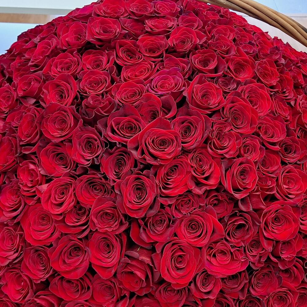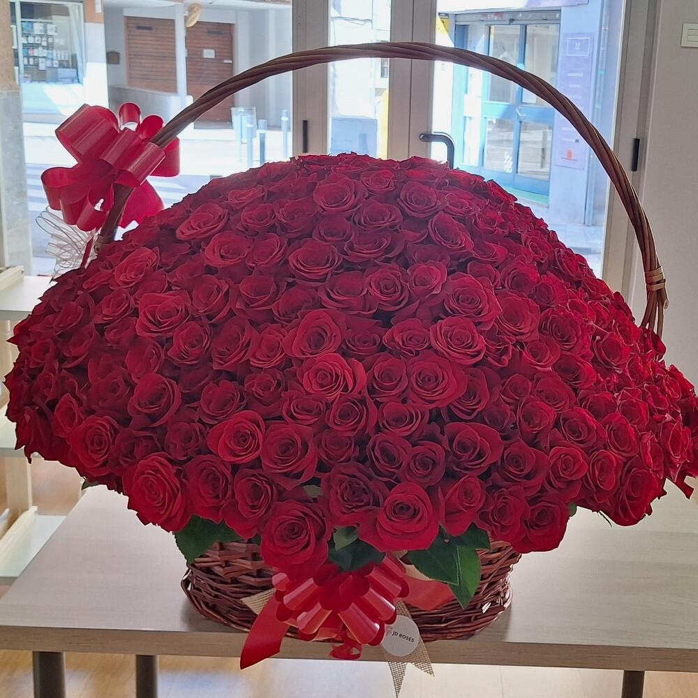 Cesta con 300 rosas rojas
