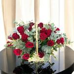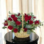 Eucalyptus - 6 ud. rosas rojas - 25 ud. cesta de mimbre - 1 ud.