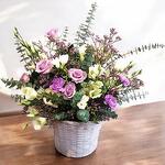 Un delicado arreglo floral en tonos pastel de lavanda, crema y verde, presentado en una elegante cesta tejida blanca. Incluye rosas lilas, lisianthus crema y claveles que aportan un toque romántico y sofisticado. El follaje de eucalipto y las ramitas de limonium completan este diseño etéreo y equilibrado. Ideal para ocasiones como aniversarios, cumpleaños o simplemente para decorar cualquier espacio con estilo. Un regalo perfecto que transmite tranquilidad y buen gusto, destacando por su frescura y naturalidad. Coloca la cesta en un lugar fresco, lejos de luz solar directa y fuentes de calor. Rocía ligeramente el follaje y las flores con agua para mantenerlas hidratadas. Cambia el agua de la esponja floral cada 2 días para garantizar la frescura. Retira las flores que se marchiten para mantener la belleza del arreglo por más tiempo.