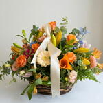 Cesta Floral Calido con Lirios y Rosas Naranjas