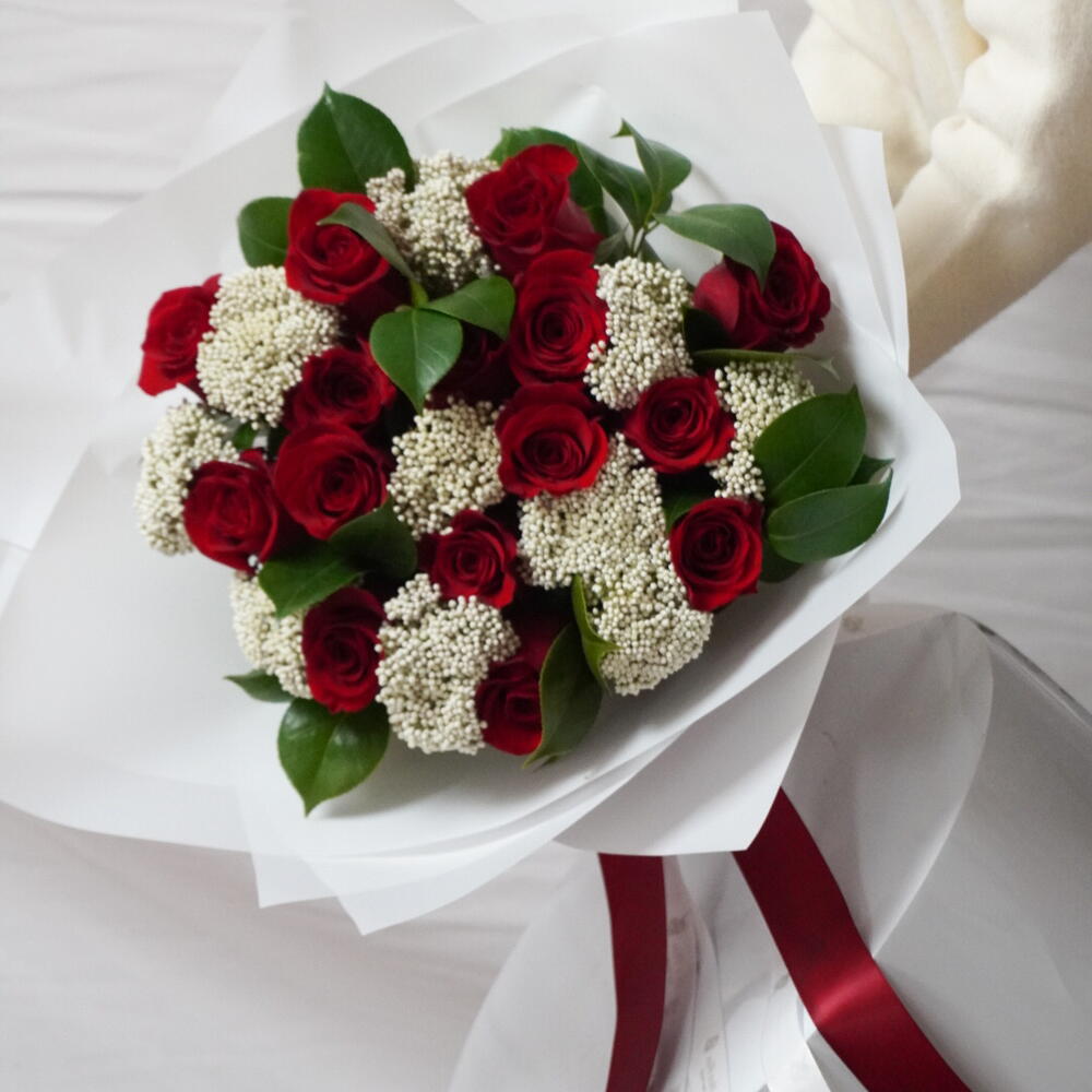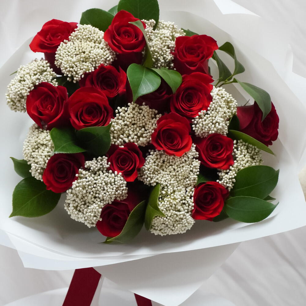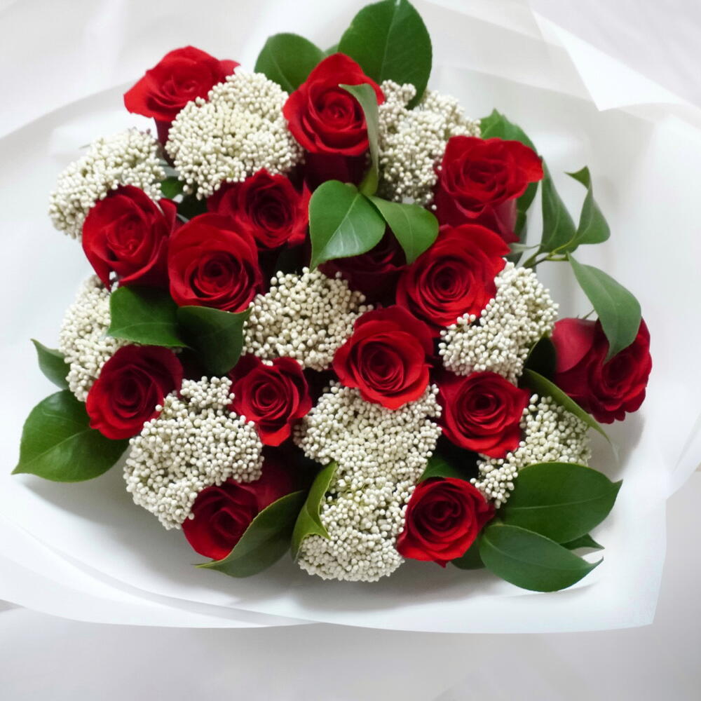 rosas rojas - 15 ud. verdes variados - 10 ud. aros - 10 ud.