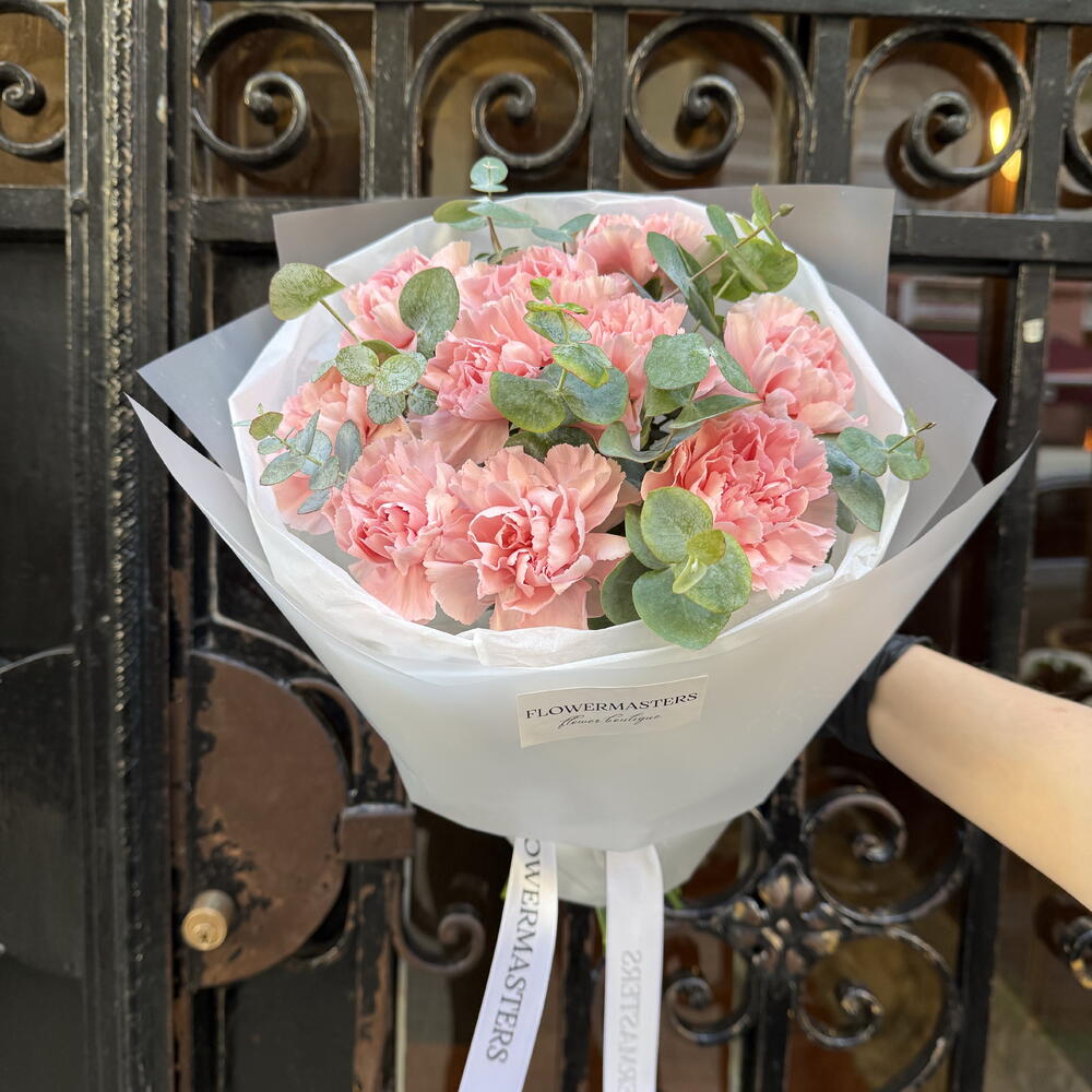 Descubre la elegancia y la sofisticación en nuestro Ramo Clásico, compuesto de 10 preciosos claveles rosas y 8 unidades de eucalipto. Un regalo exquisito que combina la delicadeza y vivacidad del clavel con la fragancia única del eucalipto para ofrecer una experiencia floral sin igual. Este ramo es perfecto para cualquier ocasión, agregando un toque de serenidad y belleza a cualquier espacio.