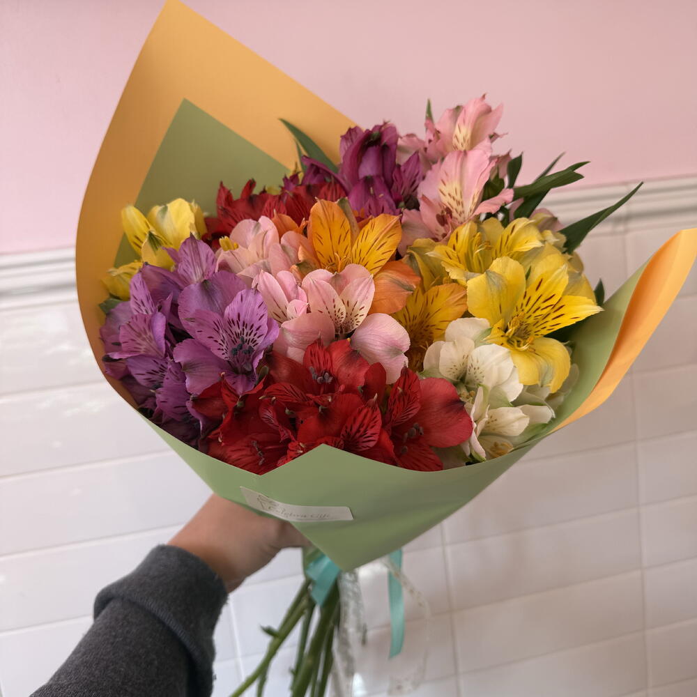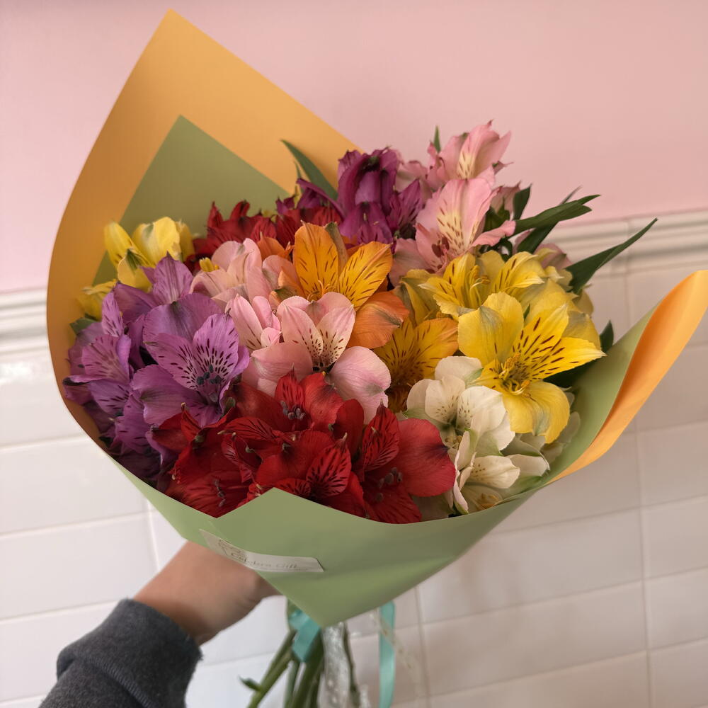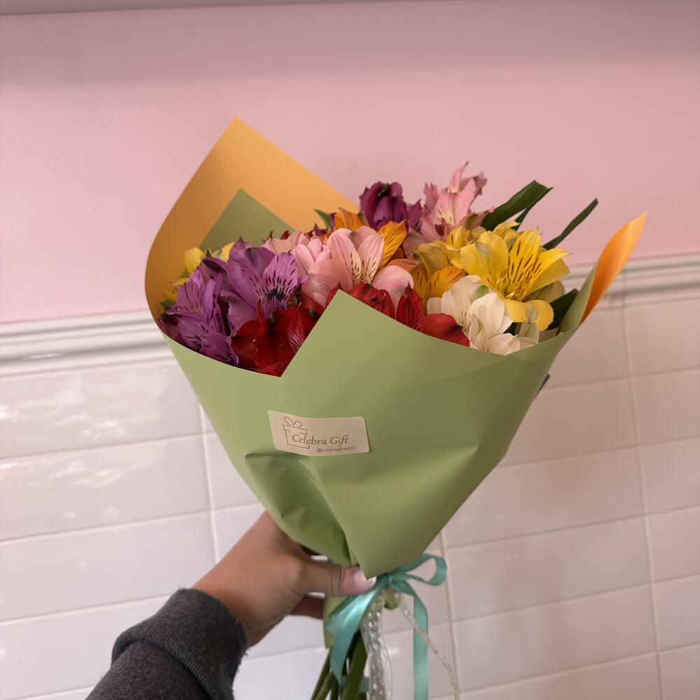 Este artículo de la categoría De autor evoca elegancia y exclusividad por su composición. Elaborado con un papel coreano de alta calidad, cada unidad de este producto viene con unas cintas decorativas únicas y bien detalladas, añadiendo un toque de originalidad y sofisticación. Además, viene con 10 unidades de alastromelias en diversos colores. Los vibrantes tonos de estas flores añaden un toque alegre y vibrante, lo que hace que este producto sea un regalo perfecto para un ser querido, o una adición encantadora a su colección personal.