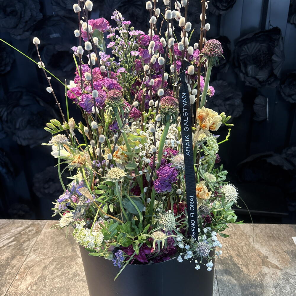 Una composición floral que combina la belleza efímera de las flores naturales con el encanto atemporal de las flores secas. Las texturas se entrelazan de forma armoniosa, creando un equilibrio entre frescura, movimiento y calidez. Los tonos naturales y la variedad de formas aportan profundidad y carácter, dando como resultado una pieza elegante, orgánica y llena de personalidad. Ideal para quienes buscan un arreglo único que conserve parte de su esencia más allá del momento.