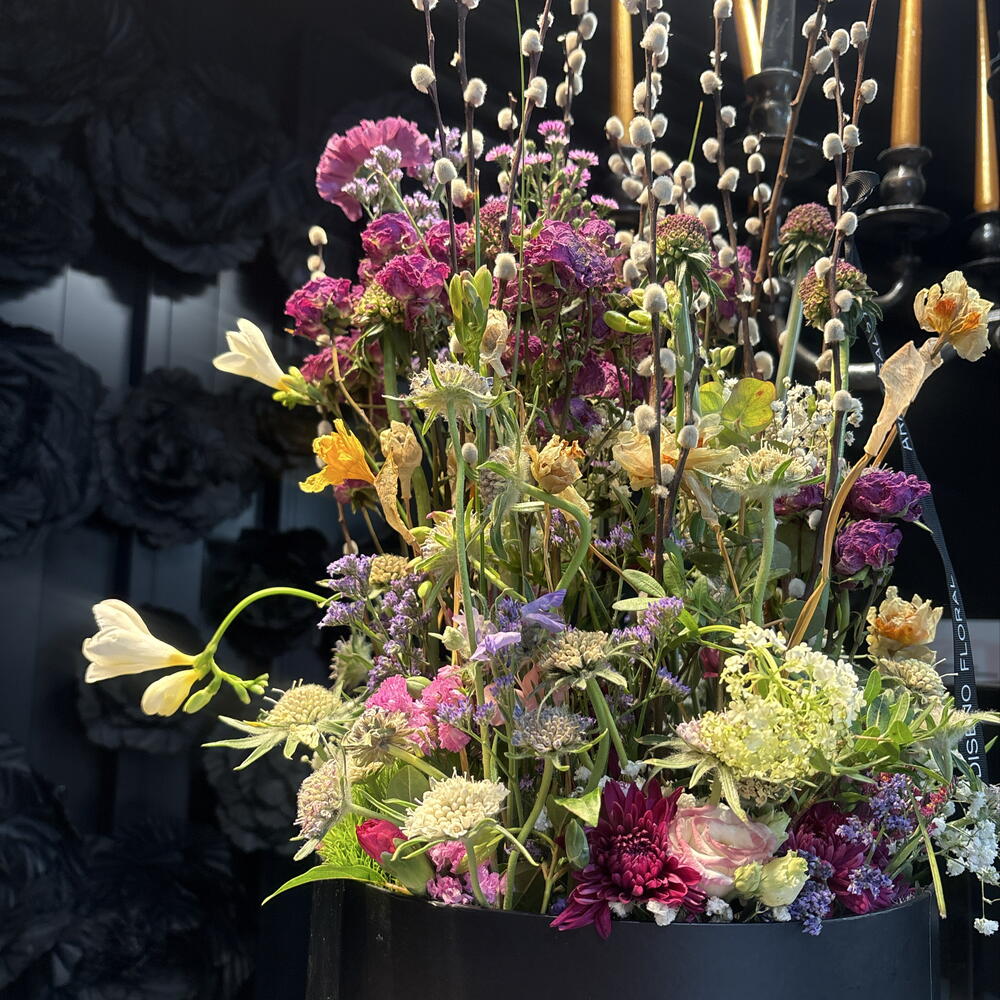 Una composición floral que combina la belleza efímera de las flores naturales con el encanto atemporal de las flores secas. Las texturas se entrelazan de forma armoniosa, creando un equilibrio entre frescura, movimiento y calidez. Los tonos naturales y la variedad de formas aportan profundidad y carácter, dando como resultado una pieza elegante, orgánica y llena de personalidad. Ideal para quienes buscan un arreglo único que conserve parte de su esencia más allá del momento.