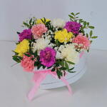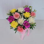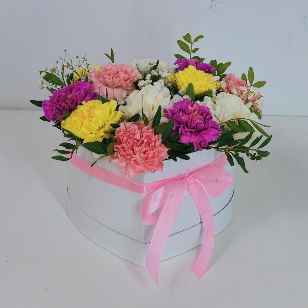 paniculata - 2 ud. verdes - 3 ud. caja corazón - 1 ud. claveles mixtos - 12 ud.