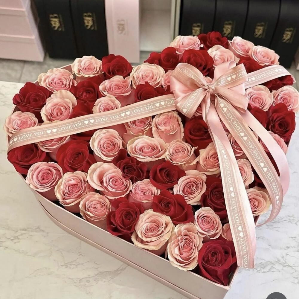 rosas rosadas - 20 ud. rosas rojas tallo largo - 30 ud. caja decorativa - 1 ud.