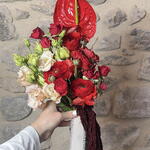 Corazon Salvaje – ramo de lisiantus, ranunculos rojos, anthurium rojo y amaranthus rojo