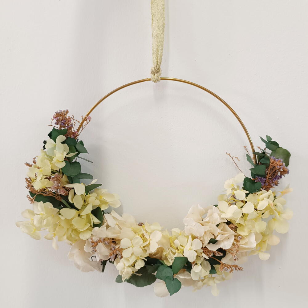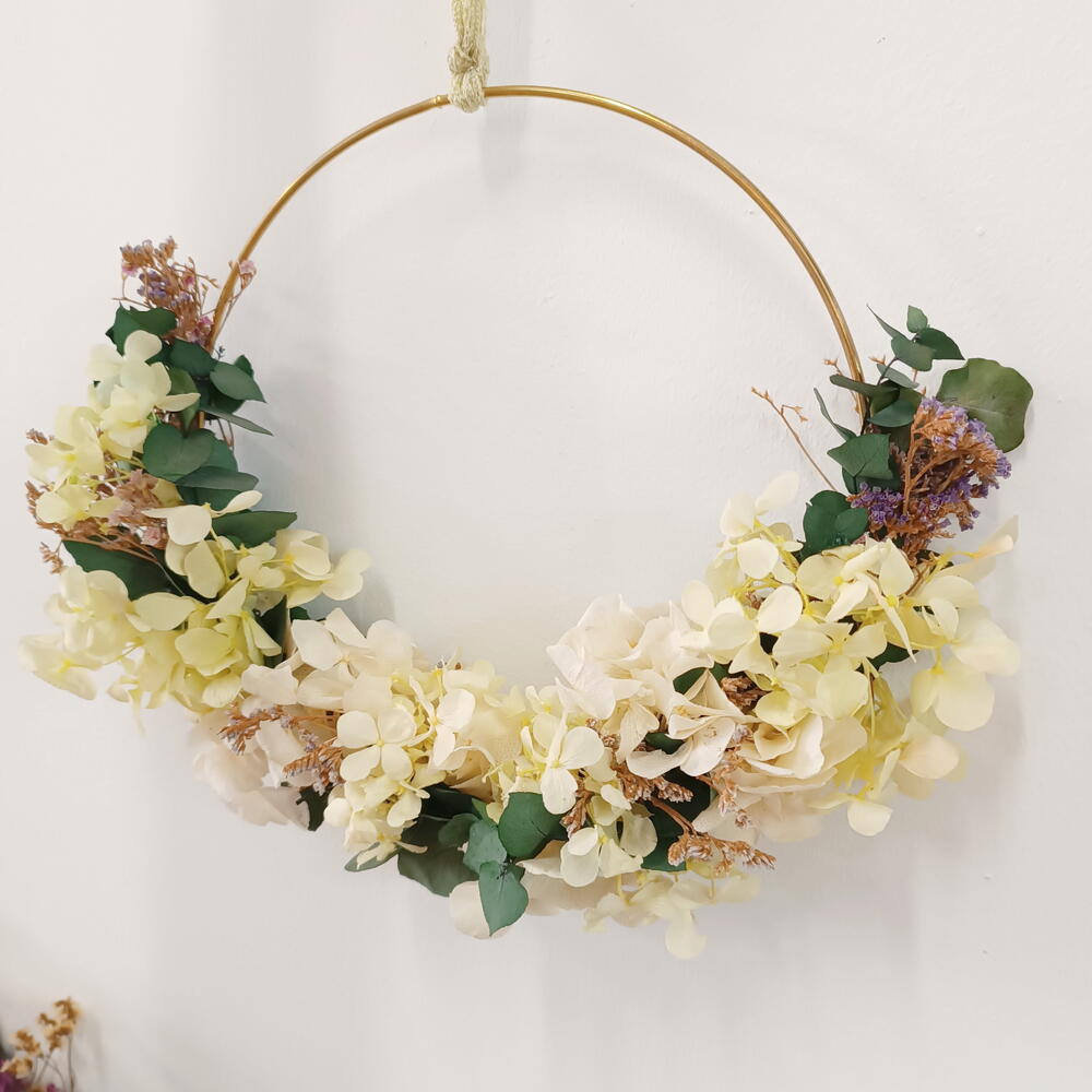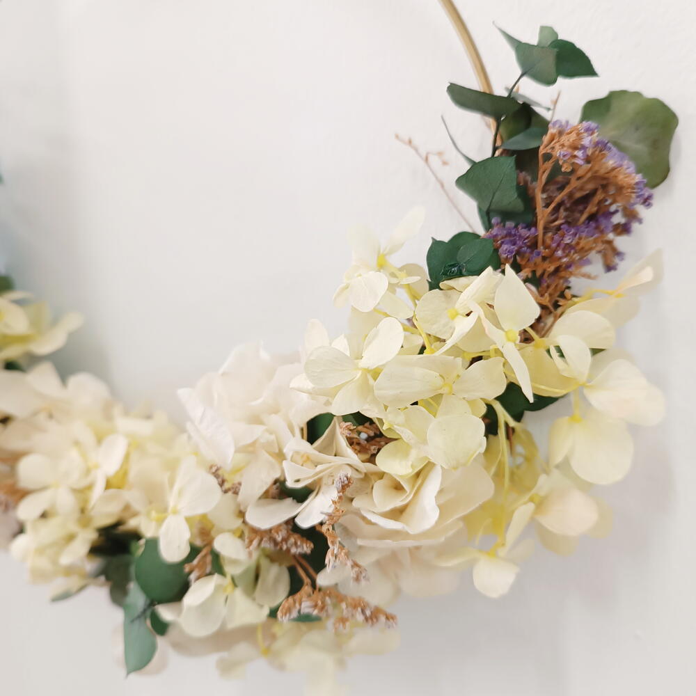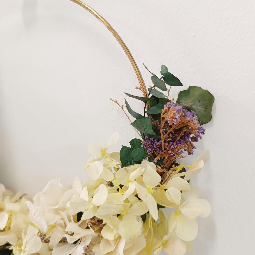 limonium purple - 5 ud. eucalipto preservado - 5 ud. hortensia preservada blanca - 10 ud. hortensia preservada verde eucalipto - 10 ud.
