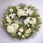 🤍 Corona Funeraria Blanca – Despedida Eterna Esta corona funeraria en tonos blancos y verdes naturales ha sido creada como un símbolo de paz, respeto y amor eterno. Su diseño circular representa el ciclo infinito de la vida y el recuerdo que permanece para siempre. Elaborada con una cuidada selección de lirios blancos, hortensias, margaritas, rosas y flor de relleno delicada, acompañadas de abundante verde fresco, transmite serenidad y consuelo en los momentos más difíciles. Cada flor expresa pureza, homenaje y gratitud hacia quien ya no está. 🕊️ Un mensaje silencioso pero profundo, que habla cuando las palabras no alcanzan. ✨ Características: • Flores naturales de alta calidad • Diseño artesanal, equilibrado y elegante • Estilo clásico y atemporal • Ideal para ceremonias de despedida y homenajes Una corona pensada para honrar la memoria, acompañar con dignidad y expresar un último adiós lleno de respeto y amor.