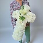 rosas blancas - 3 ud. verdes decorativos - 2 ud. claveles blancos - 60 ud.