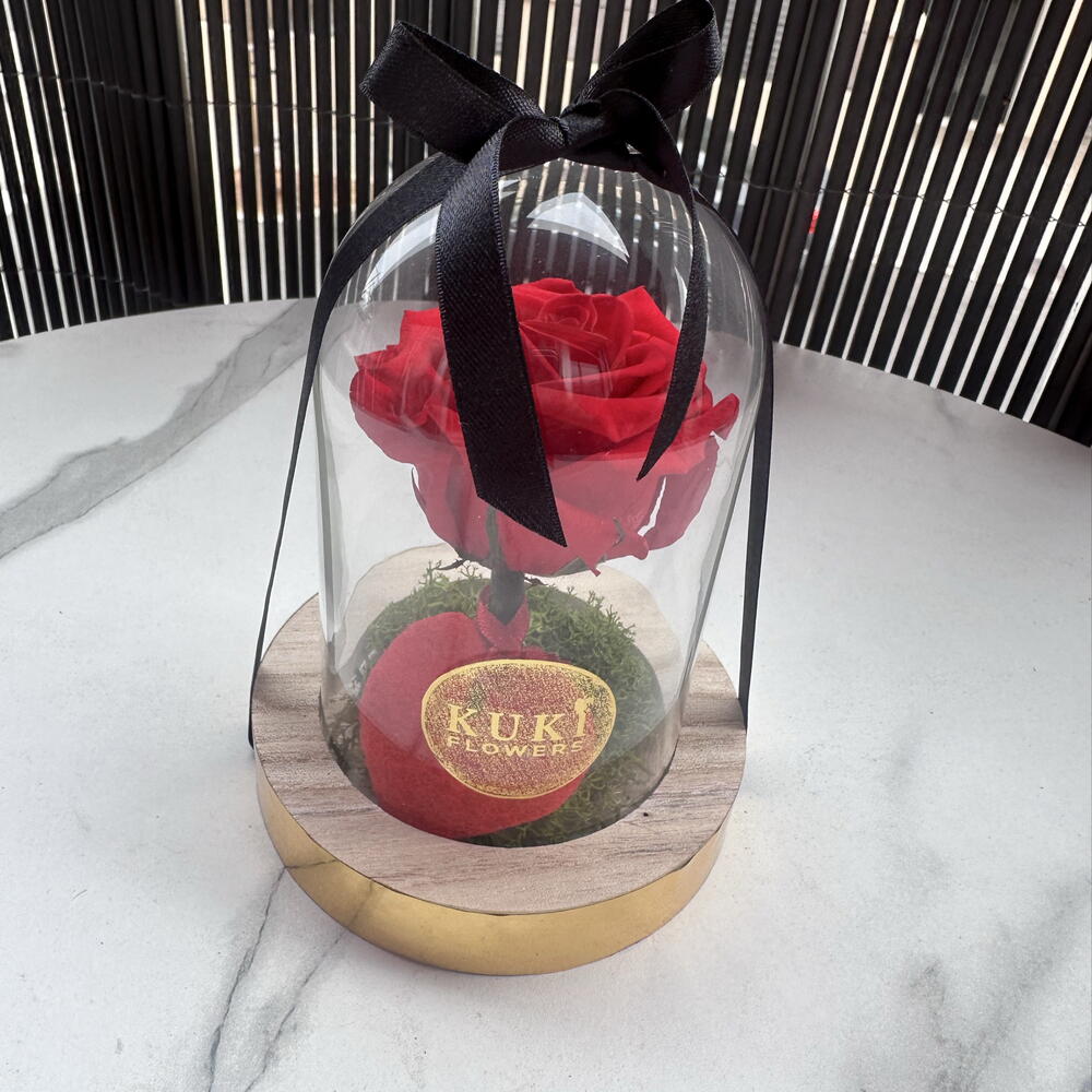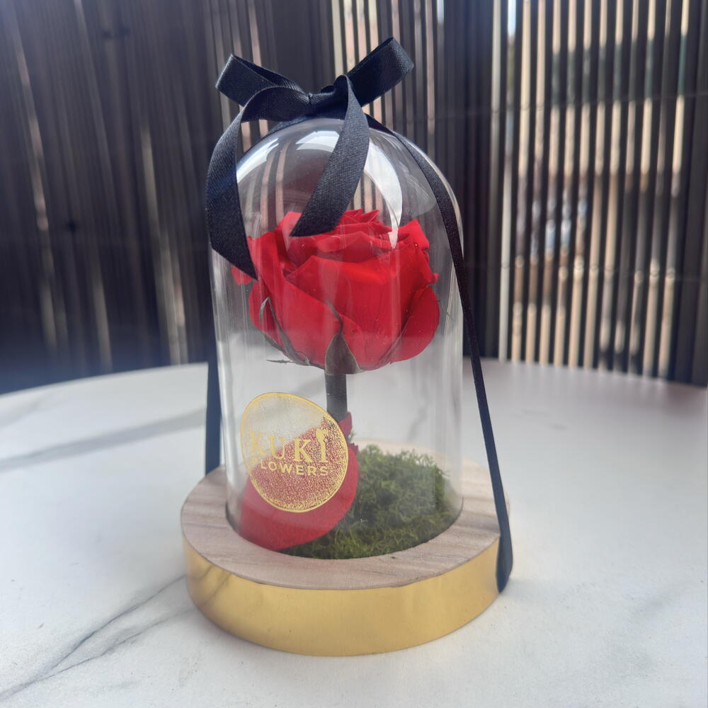 Cúpula de una rosa natural preservada, súper romantica, puedes pedirla en el color que prefieras es perfecta para promesas de amor, para dar a una cumpleañera algo muy exclusivo, a una amiga o como agradecimiento a alguien especial, su duración es de 1 a 3 años. Esto la hace un regalo muy especial.