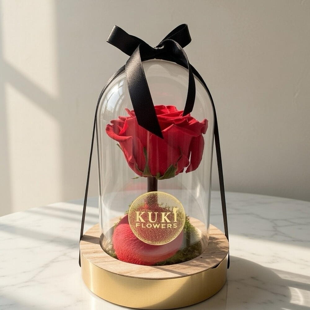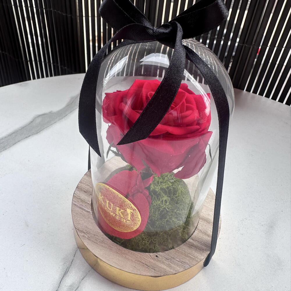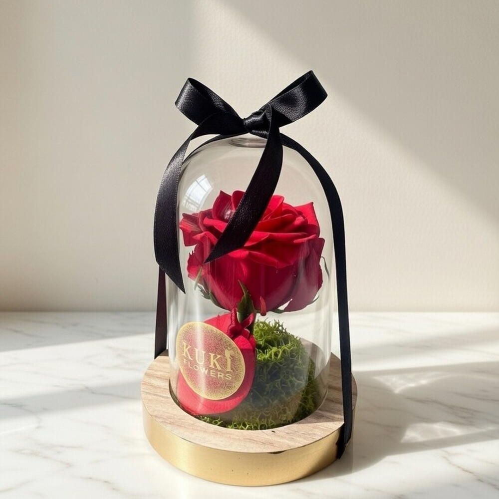 cúpula de cristal - 1 ud. rosa eterna - 1 ud. tarjeta dedicatoria - 1 ud.
