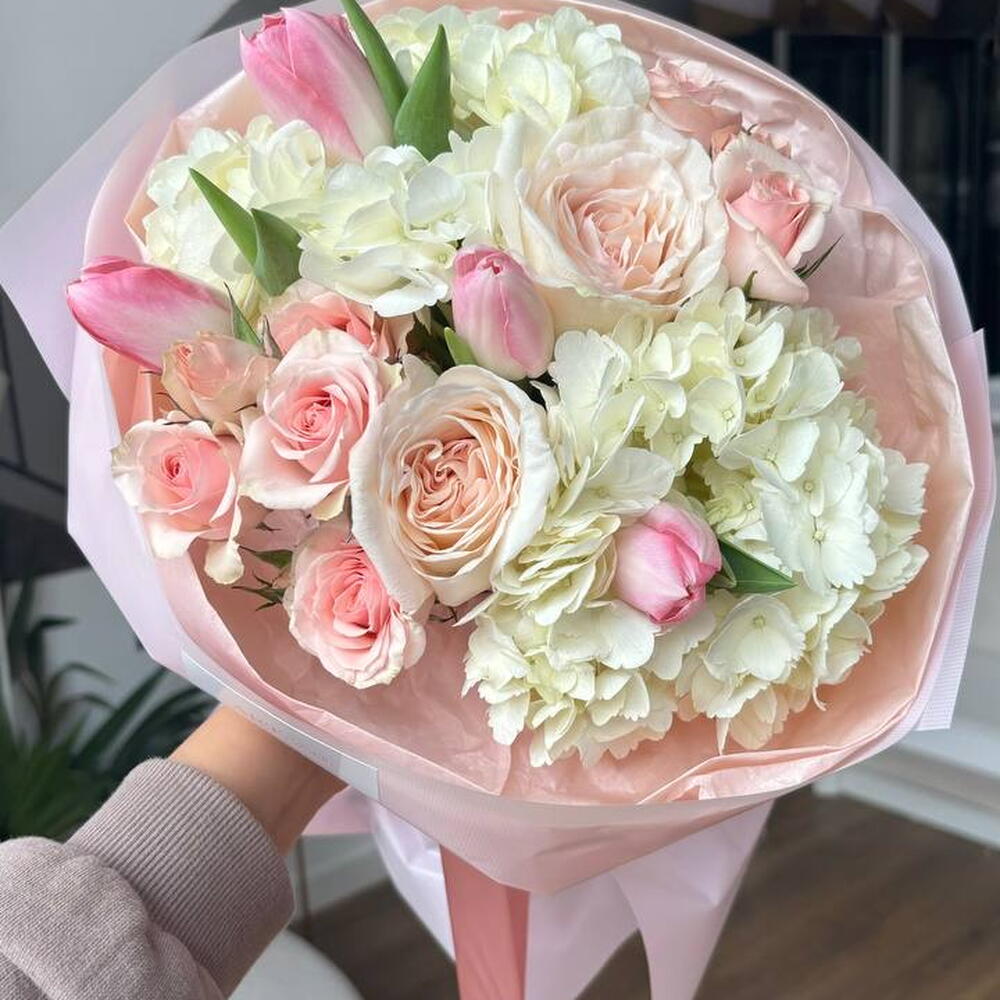 Tulips - 4 ud. hortensia - 2 ud. roses - 6 ud.