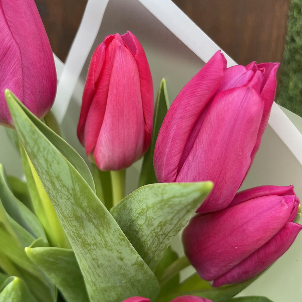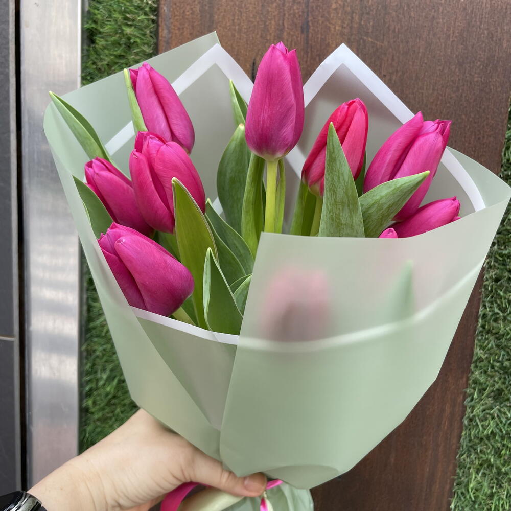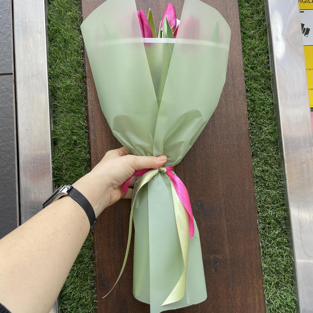 papel coreano - 3 ud. cinta decorativa - 2 ud. tulipanes fucsia - 10 ud.