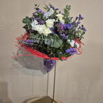 Limonium - 2 ud. eucalipto cinerea - 5 ud. rosa ramificada - 2 ud. estructura de pajas - 1 ud. estatice colores - 3 ud. lentrisco - 6 ud.