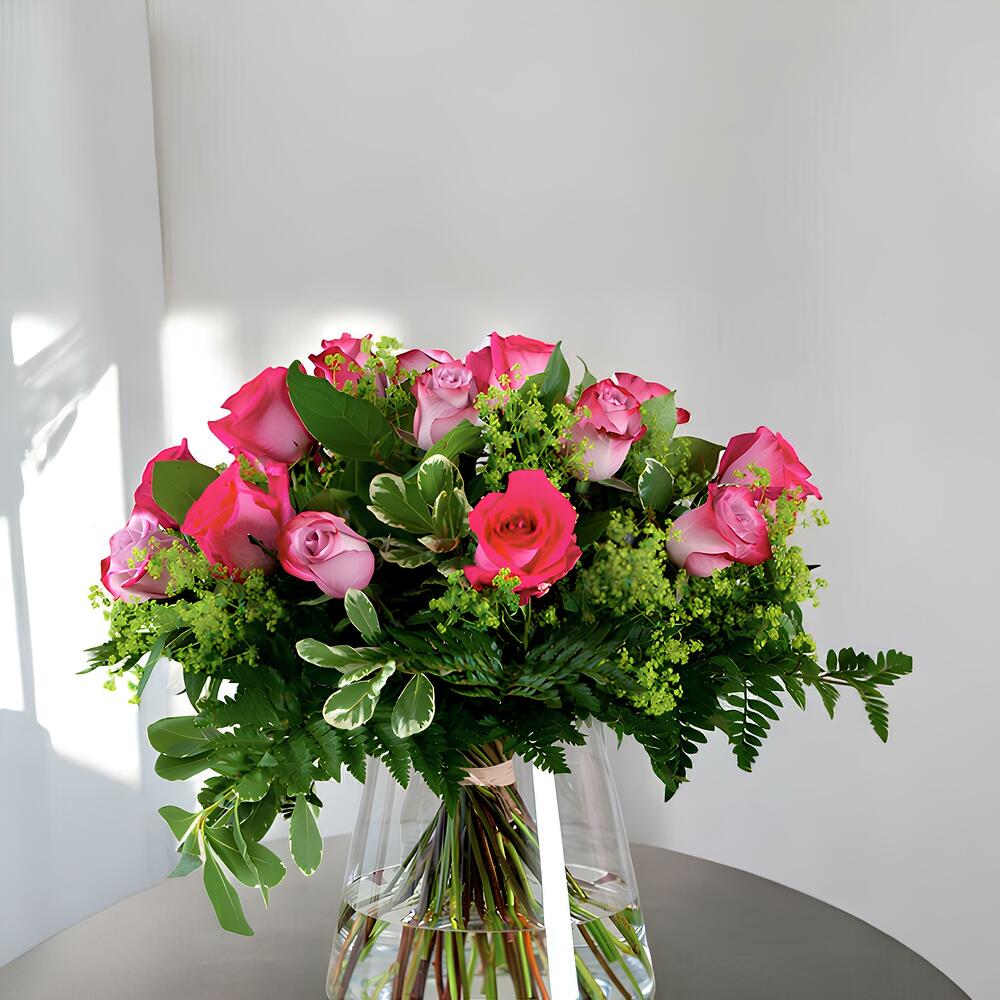 Este arreglo es perfecto para sorprender y alegrar el día de esa persona especial, con la delicadeza y encanto que solo las rosas rosadas pueden transmitir.