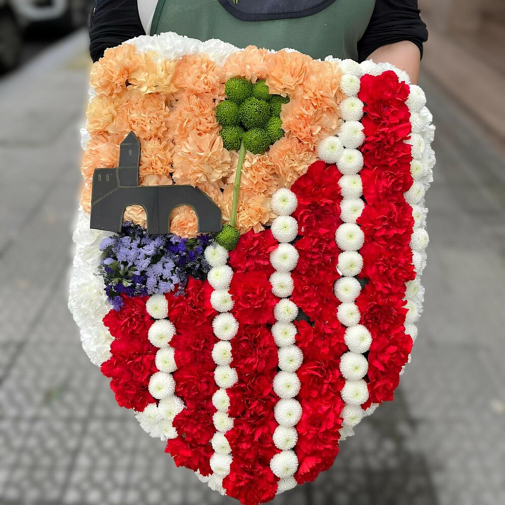 Escudo del Athletic Club creado con flores. Bonita despedida para sus seguidores. Puede añadirse un texto corto en una cinta