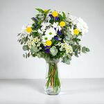 margaritas - 10 ud. estatice púrpura - 3 ud. flores de craspedia - 3 ud.