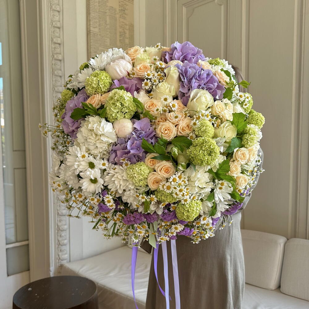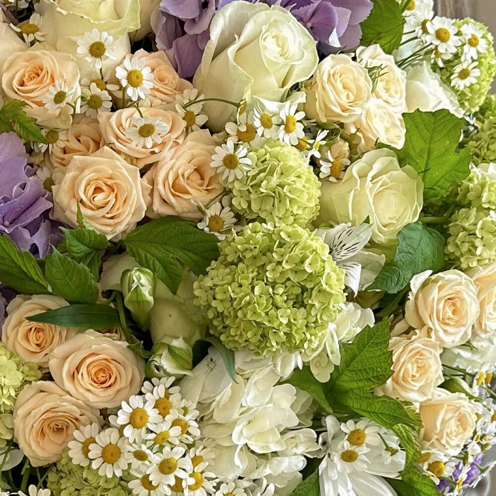 Statice - 10 ud. Viburnum - 7 ud. hortensia - 10 ud. margaritas - 10 ud. roses - 15 ud. rosas ramificadas - 10 ud. camilla - 20 ud.