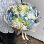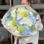 Eucalyptus - 1 ud. Hydrangea - 4 ud. El crisantemo - 1 ud. Viburnum - 3 ud. ranunculus - 5 ud. flor de rosa spray blanca - 5 ud.