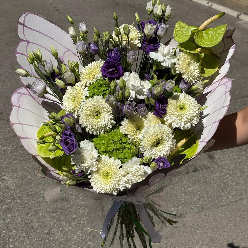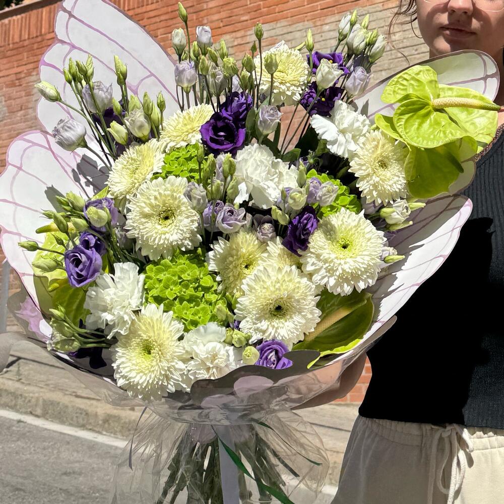 hortensia - 3 ud. Gerbera - 10 ud. Anthurium - 5 ud. Lisianthus - 10 ud. dianthus - 5 ud. packaging design - 6 ud.