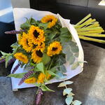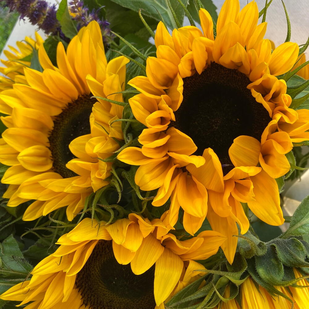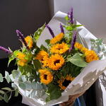 Este vibrante ramo de girasoles captura la esencia del verano con su energía radiante y colores cálidos. Acompañado de flores moradas que contrastan elegantemente y un toque fresco de eucalipto, este arreglo es perfecto para iluminar cualquier espacio y transmitir alegría. Ideal para ocasiones especiales o simplemente para alegrar el día, su encanto natural y estilo rústico hacen de este ramo una elección encantadora.